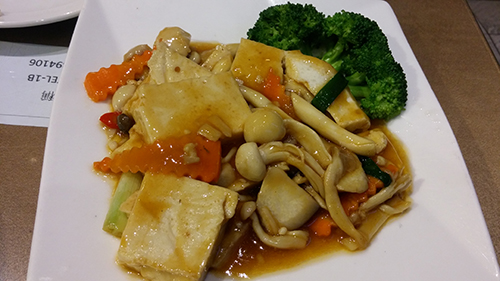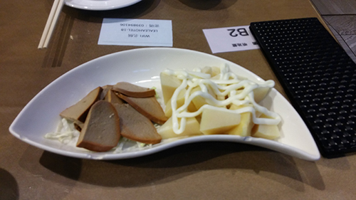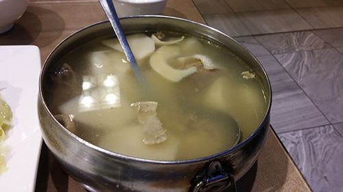 อ้อ! เกือบลืม เรื่องสำคัญอีกเรื่อง คงเดากันได้นะคะว่าคือเรื่องกิน ฮิฮฺิ ห้องอาหารที่นี่ต้องจองโต๊ะกันหน่อยนะ เพราะด้วยความที่มีอยู่แห่งเดียว เราจะจองที่ตอนห้าโมงครึ่ง ปรากฎว่าเต็มแล้ว เลยต้องทิ้งเบอร์มือถือไว้ พอมีโต๊ะว่างเขาจะโทร.มาเรียก นี่ขนาดอยู่บนเขาสูงจากระดับน้ำทะเลถึง 1,000 เมตร ยังมีสัญญาณมือถือ และ 4G อีกด้วยนิ ไม่ธรรมดาจริงๆ ฮิฮิ และคงเป็นเพราะแบบนี้มั้ง ทางโรงแรมเลยไม่มีไว-ไฟในห้องพัก มีแต่บริเวณล็อบบี้และห้องอาหาร อาหารก็มีแบบจะสั่งเป็นจานๆ ก็ได้ แต่ดูจากราคาแล้วกินแบบเซตจะคุ้มกว่า ในเมนูมีเป็นเซตตั้งแต่ 2-3 คนขึ้นไป จนถึงขนาด 10 คน เราเลือกแบบเซต A ของ 2-3 คน ราคารวมค่าบริการแล้วอยู่ที่ 1,078 หยวนค่ะ อาหารรสชาติอร่อยใช้ได้นะคะ เพียงแต่ออกแนวภูเขาไปหน่อย ออร์เดิฟเป็นหน่อไม้ราดมายองเนสกับตับหมูหมักซอสรมควัน แล้วน้ำแกงยังเป็นไก่ต้มหน่อไม้อีก ฉันยังพูดกับคุณชายเลยว่า สงสัยขุดหน่อไม้แถวนี้มาทำกับข้าวให้เรากินแน่เลย ฮ่าๆๆ