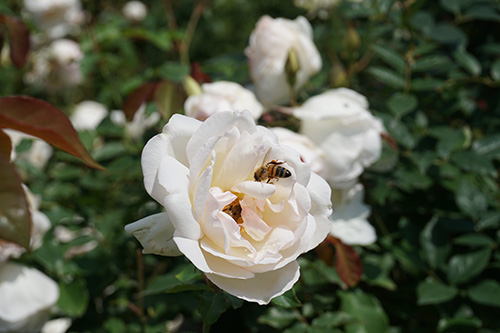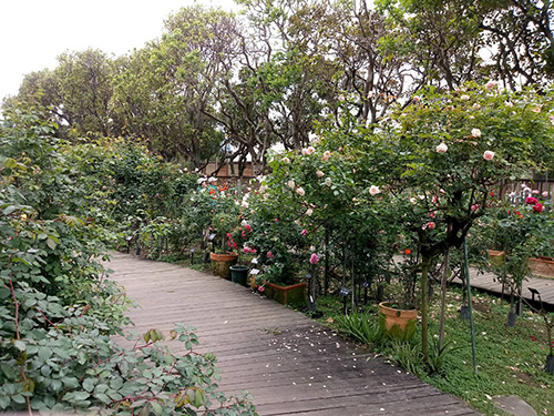 กินเสร็จเราก็ข้ามถนนมาสวนสาธารณะ 美術公園 – เหม่ยซู่กงหยวน เดินตัดสวนมาจนเกือบชนตึก Taipei Fine Arts Museum ก็เดินเลี้ยวขวาต่อไปที่ Xinsheng Park อันเป็นที่ตั้งของ Taipei Rose Garden จุดหมายแรกของเราค่ะ เพราะช่วงนี้มีงานเทศกาลดอกกุหลาบประจำปีอยู่ เป็นช่วงที่ดอกกุหลาบกำลังบานสะพรั่งเต็มสวน มีดอกกุหลาบกี่ร้อยสายพันธุ์ก็จำไม่ได้แล้วค่ะ😅 คือบริเวณพาร์กทั้งสองแห่งนี้เคยเป็นบริเวณที่จัดงาน Taipei Floral Expo เมื่อปี 2010 ดังนั้น จึงมีทางเดินเชื่อมต่อกันแบบร่มรื่น มีถนนให้ยืนรอไฟจราจรเดินข้ามแค่เส้นเดียวเองค่ะ ส่วนของสวนกุหลาบมีสองจุด โดยจุดนึงมีประตูปิด-เปิดเป็นเวลา โชคดีค่ะว่าวันที่ฉันพาคุณชายไปนั้น เทศกาลได้เริ่มมาประมาณ 3 สัปดาห์ได้แล้ว คนเลยไม่ค่อยเยอะมาก เราเลยถ่ายรูปกันได้แบบสบายๆ คุณชายเอากล้องไปด้วย ถ่ายรูปผึ้งตอมดอกกุหลาบมาได้หลายรูป ผีเสื้อก็บินกันว่อน แต่จับภาพไม่ทันสักตัว😆 เดินชมทั้งสองสวนจนเมื่อย เลยไปนั่งพักอยู่บริเวณที่มีต้นไม้ใหญ่ๆ ฉันแทบจะนอนหลับตรงนั้นได้เลย ลมพัดเย็นๆ แถมมีเสียงนกร้องจิ๊บๆ