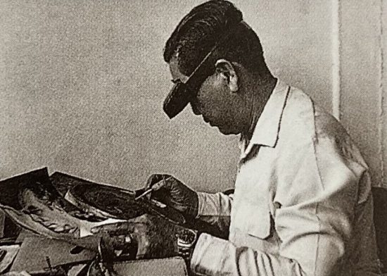 ไพฑูรย์ เมืองสมบูรณ์ ขณะปั้นรูปเหมือนศิลป์ พีระศรีเมื่อพ.ศ. 2505 (ภาพจากครอบครัวเมืองสมบูรณ์)