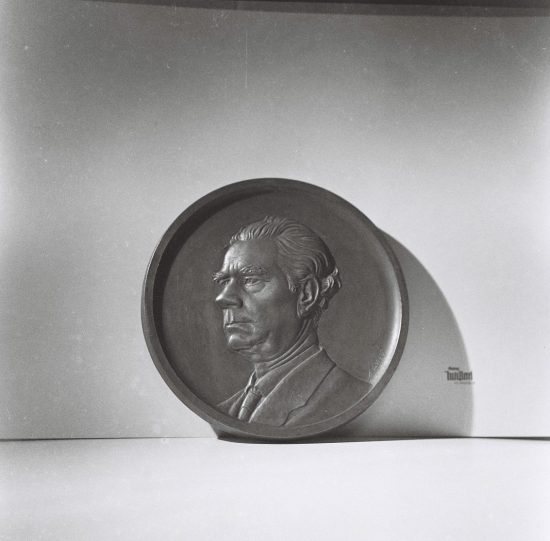 ’ประะติมากรรมแบบนูนต่ำรูป ศิลป์ พีระศรี ที่หล่อขึ้นจากบรอนซ์‘ พ.ศ. 2505 เทคนิคภาพถ่าย ขนาด 8 x 10 เซนติเมตร