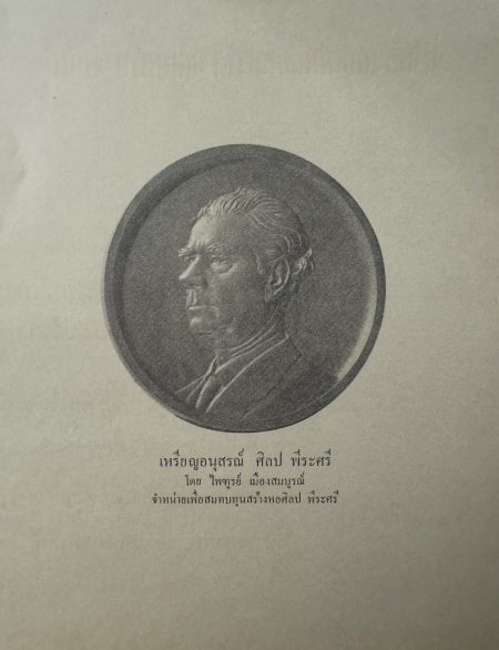 ภาพเหรียญอนุสรณ์ ศิลป์ พีระศรี ในสูจิบัตรการแสดงศิลปนานาชาติ ครั้งที่ 1 ณ โรงละครแห่งชาติ 11-25 กุมภาพันธ์ 2508