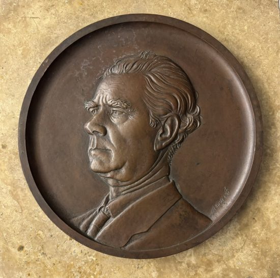 ประะติมากรรมต้นแบบเหรียญอนุสรณ์ ศิลป พีระศรี‘ พ.ศ. 2505 เทคนิคบรอนซ์ และหินอ่อน ขนาด 31.5 x 31.5 x 4 เซนติเมตร ศิลปิน ไพฑูรย์ เมืองสมบูรณ์