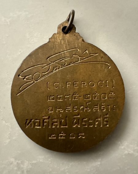 เหรียญอนุสรณ์ ศิลป พีระศรี ด้านหลัง’ พ.ศ. 2508 ขนาดเส้นผ่านศูนย์กลาง 3.5 เซนติเมตร ศิลปิน ไพฑูรย์ เมืองสมบูรณ์