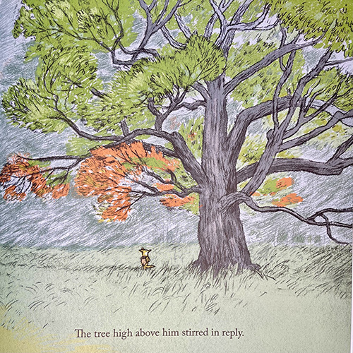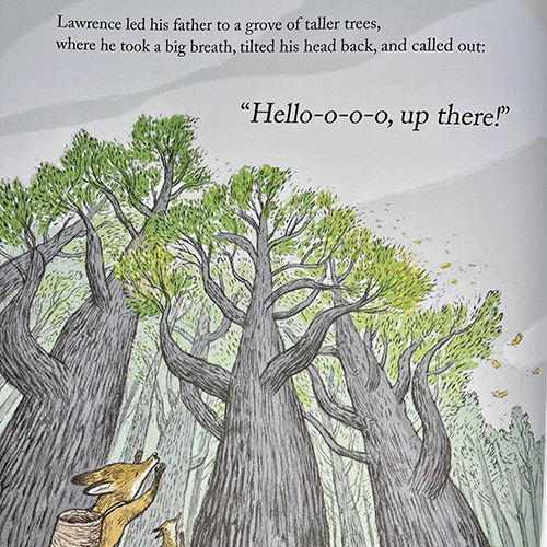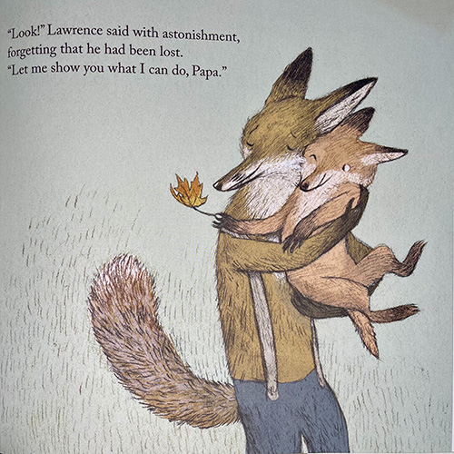 ประโยคแรกของหนังสือนิทานเล่มนี้เริ่มต้นจาก “ลอว์เรนซ์ยืนตัวแข็งทื่อ เมื่อเห็นการบ้านบนกระดานดำ” จากนั้น Matthew ก็นำผู้อ่านเข้าไปสู่เรื่องราวอันทรงพลัง พาเข้าไปผจญภัยในป่า ทำความรู้จักกับตัวเอง เผชิญหน้ากับความกลัว ความโดดเดี่ยวและความเป็นอิสระ ในนิทานอาจมีการสอดแทรกเรื่อง สังคมวัตถุนิยม การแบ่งปันให้กับคนรอบข้าง และการเสียสละให้คนที่เรารักอยู่บ้างประปราย ขึ้นอยู่กับว่าผู้อ่านจะหลงไปพบเจอประเด็นไหนเข้า ภาพวาดลายเส้นฝีมือของ Doug นั้นก็ทำงานสอดประสานกับเรื่องราวได้เป็นอย่างดี มีความสวยงาม นุ่มนวล ละเอียดอ่อน และเต็มไปด้วยการถ่ายทอดอารมณ์ต่างๆ บนสีหน้า โดยเฉพาะความวิตกกังวลที่เจืออยู่เสมอของใบหน้าลอว์เรนซ์ การใช้ลายเส้นดินสอ การคุมโทนด้วยสีฟ้า สีน้ำตาลอ่อน (Muted Brown) และสีเอิร์ธโทน (Earth Tone) หรือกลุ่มสีที่เลียนแบบสีของธรรมชาติ ก็ยิ่งทำให้เรารู้สึกเหมือนได้ไปสัมผัสกับธรรมชาติจริงๆ มากขึ้น