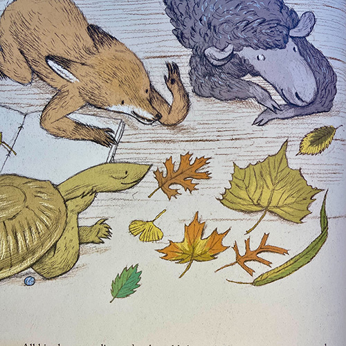 ที่ปกในด้านหลังของนิทานเล่มนี้ยังมีภาพประกอบของใบไม้ต่างๆ ทั้ง Sugar Maple, Paper Birch, Red Oak, Weeping Willow, Horse Chestnut, Sycamore และอื่นๆ อีกมากมายที่เชิญชวนให้พวกเรา (เด็กๆ) ไปเดินเก็บกันในช่วงฤดูใบไม้ร่วงอยู่…
