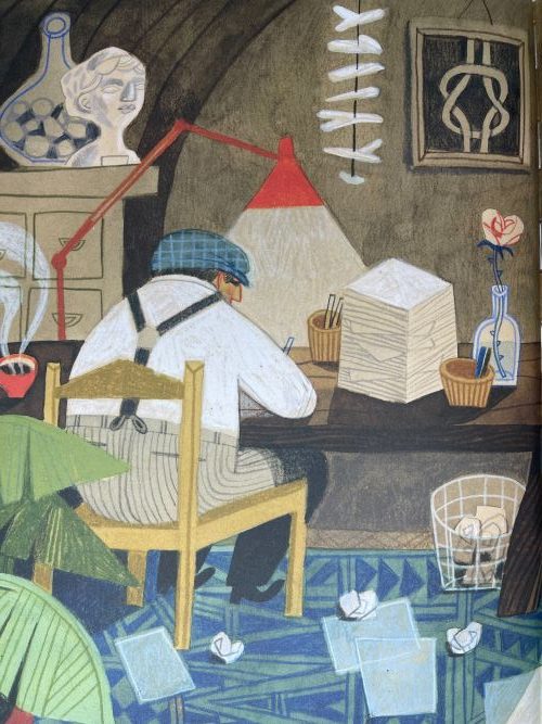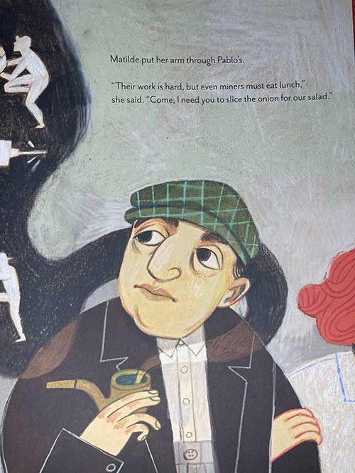 งานวาดของ Felicita ในหนังสือนิทานเรื่องนี้พยายามแสดงให้เห็นความขมขื่นของ Pablo โดยการผสมสีเขียวมะกอกใส่ลงไปในสีผิวของเขา ขัดแย้งกับ Matilde มีผมสีแดงสดใส ถือเครื่องดนตรีไว้ และยิ้มแย้มตลอดเวลา ภาพวาดของเธอใช้เทคนิคของ Matte Painting เข้ามาร่วมด้วย นั่นคือการเขียนภาพกระจกหน้าต่างใส่เข้าไปในภาพ เพื่อโชว์ให้เห็นถึงภูมิทัศน์ที่กว้างออกไปมากยิ่งขึ้น ทำให้เห็นว่าข้างนอกมีอะไรมากกว่าที่เราเห็นอยู่อีก นอกจากนี้ Felicita ยังแอบวาดรูปและของประดับตกแต่งมากมายในบ้านของ Pablo ที่บอกกล่าวถึงบทกวีอีกหลายร้อยบทที่ Pablo เคยเขียนเอาไว้เป็นนัยๆ เช่น รูปอาร์ติโชก (Ode To an Artichoke) รูปกรรไกร (Ode To a Pair of Scissors) รูปปลาทูน่า (Ode To a Large Tuna in the Market) รูปนก (Ode To Bird Watching) และรูปข้าวของแตกหัก (Ode To Broken Things) เป็นต้น