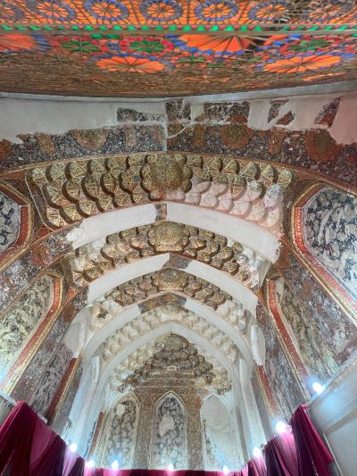 เดินชมร้านเพลินๆ ไม่ทันเหนื่อย ก็ได้รับสัญญาณให้เตรียมข้ามถนนไปอีกฝั่ง ที่เป็นที่ตั้งของ Naranjestan E Ghavam คฤหาสน์ของคหบดี ผู้ดีตระกูลกวาวัม ที่สร้างตามแบบสถาปัตยกรรมอิสลาม เคยเป็นที่พำนักของเจ้าของ เป็นที่ว่าการของเมือง (ใช้อาคารด้านหน้า) มีบทบาทสำคัญมาทุกยุคสมัยตั้งแต่ราชวงศ์ซานด์ การ์จา มาจนถึงปาห์เลวี ปัจจุบันนอกจากเป็นพิพิธภัณฑ์แล้ว ยังเป็นส่วนหนึ่งของคณะสถาปัตยกรรมศาสตร์ มหาวิทยาลัยปาห์เลวีด้วย