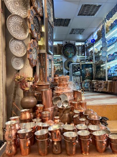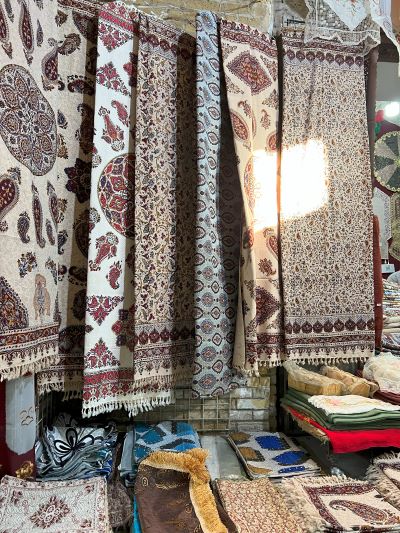 จากมัสยิดสีชมพู ไกด์พาเราเดินไปตามถนน ผ่านร้านรวงของย่านนั้น มีทั้งร้านขายพรม ขายเฟอร์นิเจอร์ ขายขนมปัง ขายเนื้อ และที่ดูจะเป็นสิ่งใหม่คือมีคาเฟ่ทันสมัยร้านเล็กๆ แทรกตัวอยู่ เราผ่านซอกซอยที่เป็นแผงขายผักผลไม้ เดินสวนกับรถเข็นขายผลไม้ เป็นรถแบบที่บ้านเราใช้ขนอิฐปูนในการก่อสร้าง