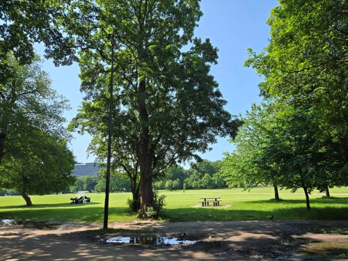 ช่วงสายของวันนั้นฉันกับพี่เลยเลือกจะไปเดินเล่นที่สวน Fælledparken ซึ่งอยู่ใกล้ตึกร้านเจอราเนียมเลย เป็นสวนสาธารณะขนาดใหญ่ มีคนมาเดินเล่น มาเตะบอล เล่นกีฬากันครึกครื้น เสน่ห์ของฤดูร้อนในเมืองหนาวก็แบบนี้ อากาศเย็นสบาย มีแดดพอประมาณ สนามหญ้า ต้นไม้ใบหญ้าเขียวชอุ่ม ดอกไม้บานสะพรั่งมองไปทางไหนก็สวยไปหมด เนื่องจากฉันมีเพื่อนรุ่นน้องคนหนึ่งที่จะมาทำงานและอยู่เที่ยวต่อในโคเปนเฮเกนสี่วันเพิ่งเดินทางมาถึงเมื่อเช้าวันนี้เอง จะจองให้ไปทานเจอราเนียมด้วยกันก็ไม่ทันแล้ว เลยนัดให้มาเดินเล่นที่สวนแห่งนี้ด้วยกันก่อน พอพวกเราทานมื้อเที่ยงที่เจอราเนียมคุณเพื่อนก็จะกลับไปนอนงีบเอาแรงและค่อยเจอกันตอนเย็นอีกที
