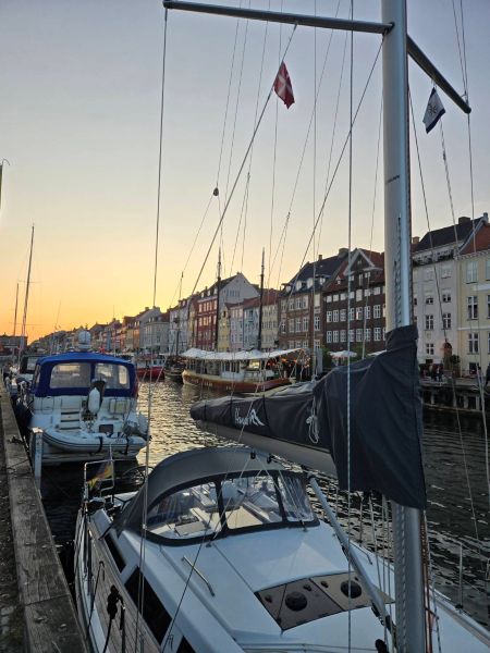 นูฮาวน์ยามย่ำค่ำก็เป็นอีกบรรยากาศ อีกความรู้สึกหนึ่งที่แตกต่างจากตอนกลางวันที่เดินเล่นเมื่อวานไปเลย ท่าเรือยังครึกครื้น คนเดินเล่น จิบเบียร์ กินอาหาร สรวลเสเฮฮาประสาเมืองที่ไม่หลับใหล ตราบใดที่ฟ้ายังไม่มืด พระอาทิตย์ยังไม่ตก โคเปนเฮเกนก็ยังมีชีวิตชีวาอยู่จนดึกจนดื่นเลย