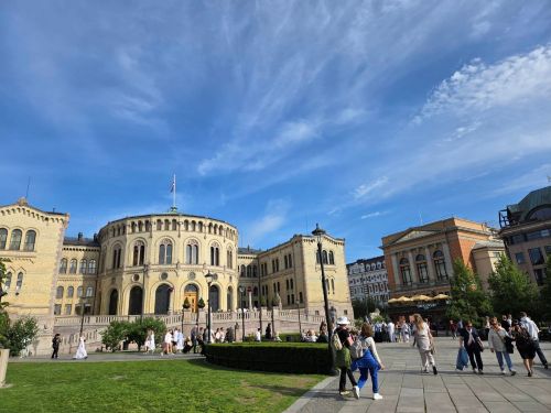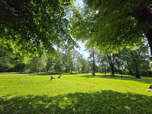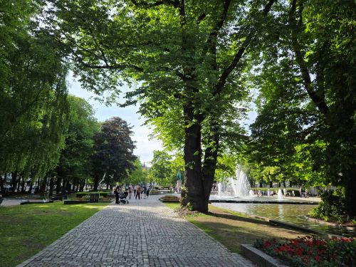 แต่ที่ฉันชอบเป็นพิเศษคือสวนสาธารณะขนาดใหญ่ที่เราเดินผ่านตั้งแต่ออกจากโรงแรมมาถึงใจกลางเมือง เป็นสวนที่ร่มรื่นเขียวขจีที่สุดสวนหนึ่งที่เคยเห็น ผู้คนก็ทั้งเดินเล่นชิล ๆ ขี่จักรยานกันสบาย ๆ ดูรื่นรมย์มาก สมกับที่เป็น “ปอดกลางเมือง” ของออสโล ชื่อว่า Royal Park หรือ Slottsparken เป็นสวนสาธารณะใจกลางออสโลที่โอบล้อมพระราชวังไว้อย่างอบอุ่นและงามสง่า สวนนี้ไม่ใช่พื้นที่สำหรับกิจกรรมกีฬาใหญ่เหมือนสวนสาธารณะทั่วไป แต่เป็นที่พักผ่อนหย่อนใจที่ผู้คนมักมาปิกนิก เดินเล่น และชมสวน อีกส่วนหนึ่งที่ทำให้ Royal Park มีความพิเศษคือความเชื่อมโยงกับ The Royal Palace หรือพระราชวังหลวง ซึ่งตั้งอยู่ไม่ไกลนัก ทั้งยังเปิดให้เข้าชมได้ฟรีตลอดปี มีต้นไม้นานาพันธุ์ตลอดทางเดินหินทำให้รายล้อมไปด้วยบรรยากาศร่มรื่น เหมาะเป็นสถานที่สำหรับพักสายตา พักขาจากการเดินเที่ยวในเมือง และเป็นจุดที่คนท้องถิ่นมักมาพบปะสังสรรค์ในวันหยุด