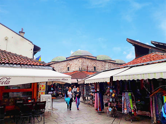 ในย่านบาซาร์บาสซาซิยา (Bascarsija) กลิ่นไก่อบหอมลอยออกมาจากร้านอาหารตรงข้าม Brusa Bezitan (ตลาดแบบหลังคาปิดรูปโดม 6 โดม และได้แบ่งส่วนหนึ่งเป็นพิพิธภัณฑ์ของเมือง) ผมกล่อมจนโกรันคล้อยตามเปิดประตูร้านเข้าไป แต่หากไม่มีบูเร็ค ขนมปังอบชีสแบบแผ่นขายด้วย เขาก็อาจไม่ยินยอม เพราะนี่คือมื้อเช้าสุดโปรดของเขา