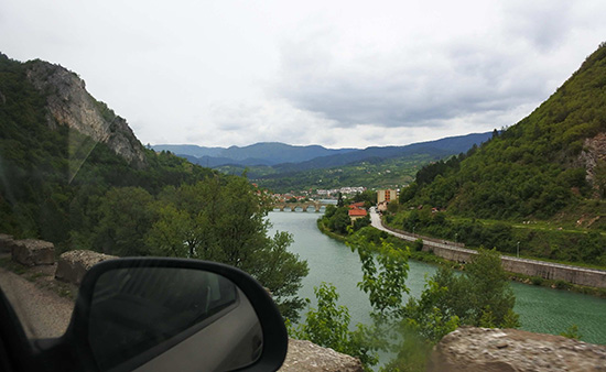 เราเดินกลับมายังร้าน Gondola เพื่อซื้อกาแฟใส่แก้วกระดาษ ก่อนขึ้นรถออกเดินทางตอนประมาณ 11 โมง ใช้เวลา 2 ชั่วโมงนิดๆ ย้อนเส้นทางเดิมก็เข้าเขตเมืองวิเชกราด แม่น้ำดรีนาไหล่ล่องเป็นสีเขียวมรกตอยู่ด้านขวามือ ผ่านสะพานเมเหม็ดพาชาโซโคโลวิชอันเป็นตำนาน ข้ามสะพานสำหรับรถข้ามไปยังฝั่งตัวเมือง สำรวจวิเชกราดในความทรงจำด้วยสายตาขณะโกรันขับออกนอกเมืองสู่ด่านชายแดนบอสเนียฯ – เซอร์เบีย