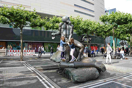 เราเดินเข้าถนนเล็กๆ ชื่อ Saalgasse เดินไปยังมุมที่มีอาคารโมเดิร์นหน้าตาแปลกๆ และไม่เหมือนกันเลยเรียงติดกันประมาณสิบหลัง แล้วจึงเดินเข้ามหาวิหารแฟรงก์เฟิร์ต (Kaiserdom) หรือเรียกในภาษาอังกฤษว่า Imperial Cathedral of Saint Bartholomew เป็นโบสถ์โรมันคาทอลิกที่มีขนาดใหญ่ที่สุดและมีความสำคัญที่สุดในนครแฟรงก์เฟิร์ต เริ่มสร้างตั้งแต่สมัยคริสต์ศตวรรษที่ 7 รูปทรงสไตล์โกธิกที่เห็นในปัจจุบันได้ปรับปรุงขึ้นใหม่ในคริสต์ศตวรรษที่ 14-15 กษัตริย์แห่งเยอรมนีและจักรพรรดิแห่งจักรวรรดิโรมันอันศักดิ์สิทธิ์ได้รับการราชาภิเษกในสถานที่แห่งนี้อยู่หลายร้อยปี ลุงอูเวอร์บอกว่าด้วยเหตุนี้จึงได้รับการอนุโลมให้เรียกว่ามหาวิหาร หรือ Dom (Cathedral ในภาษาอังกฤษ) ซึ่งหมายถึง “อาสนะสังฆราช” ได้ แม้ว่าโบสถ์นี้จะไม่มีตำแหน่งสังฆราชหรือบิชอปก็ตาม